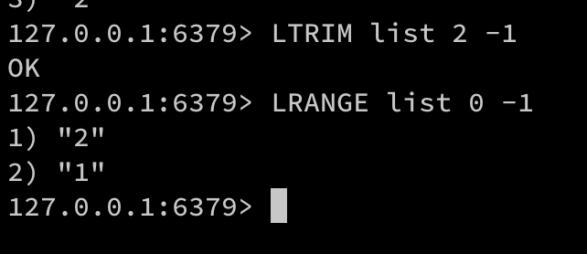 前面用了lrange取得了一个范围的数据,如果想将数据直接移除,那可以用 ltrim ,