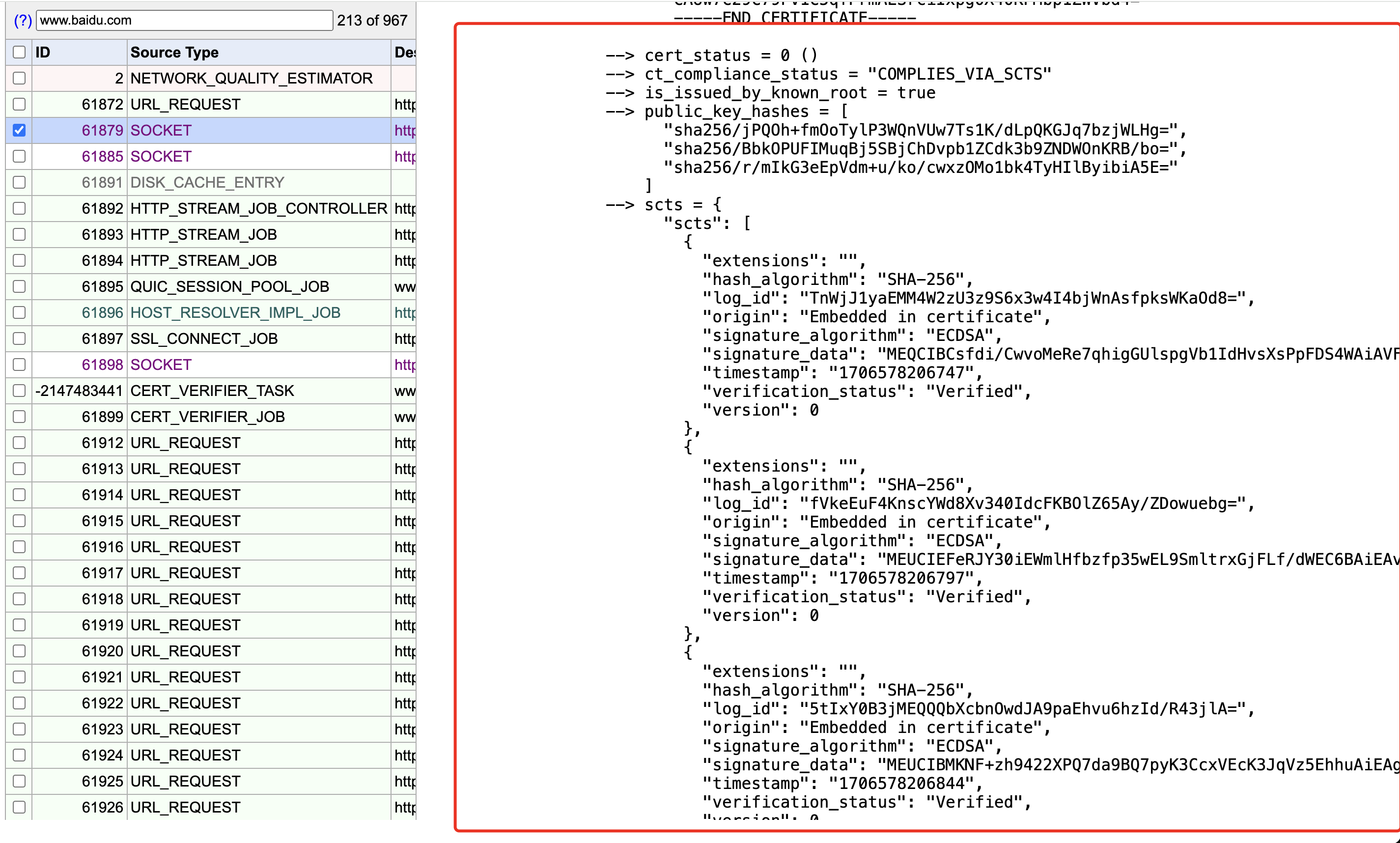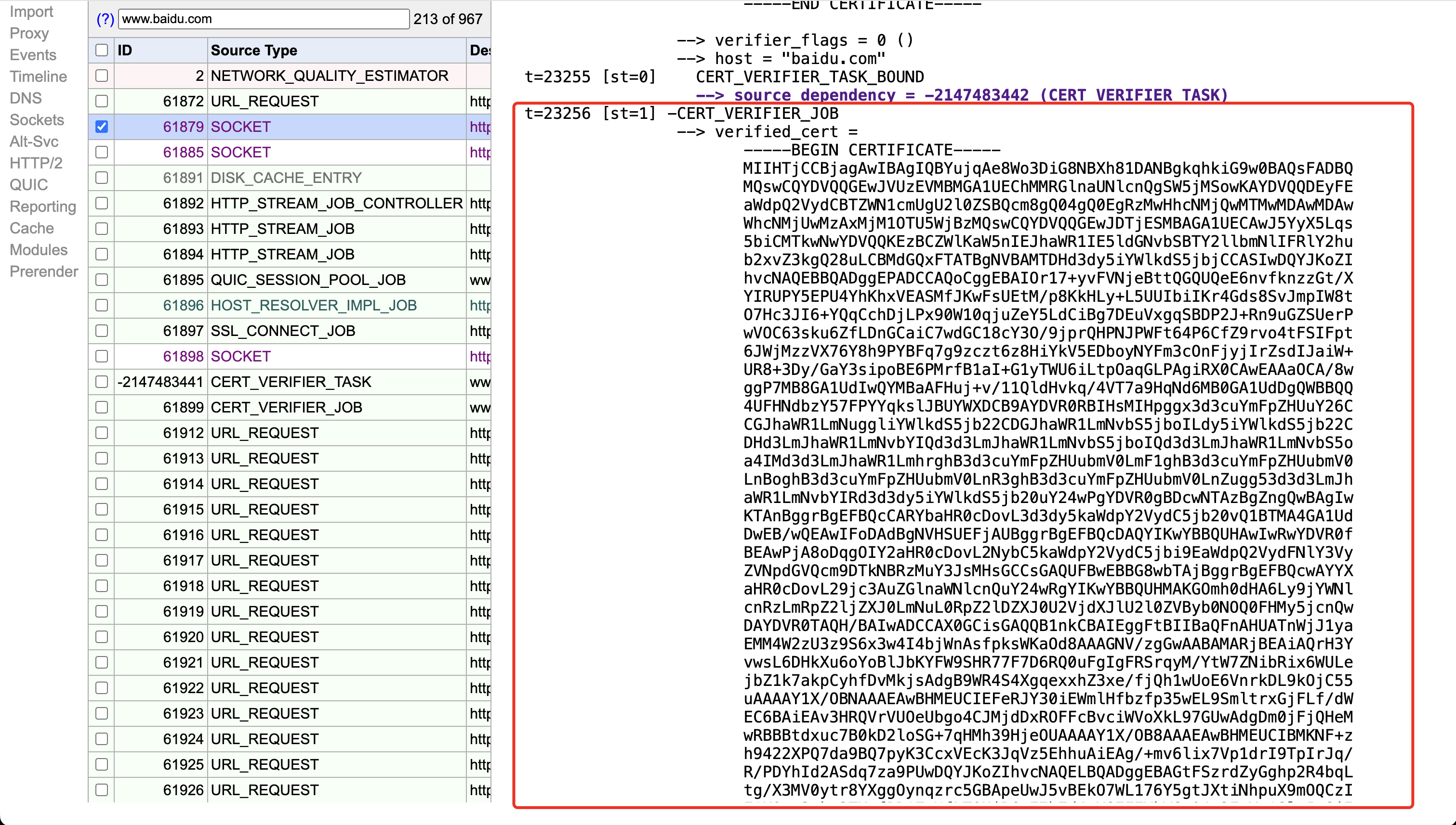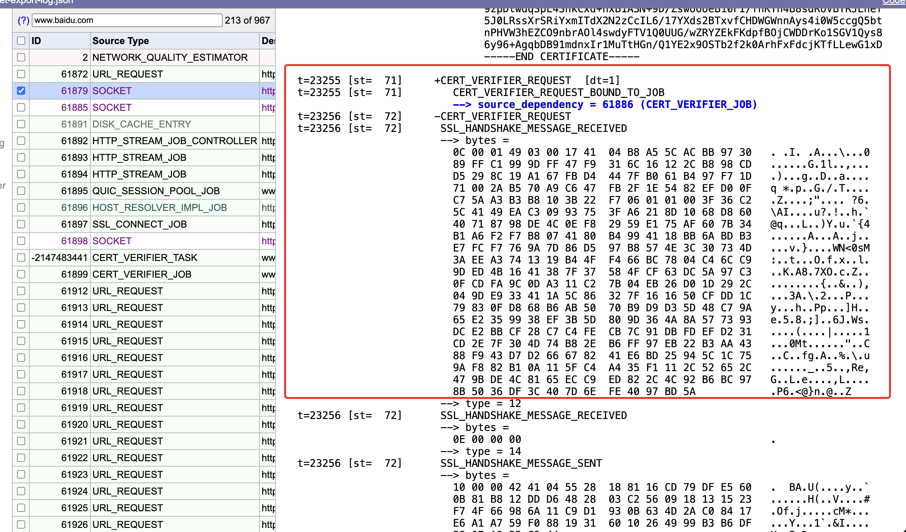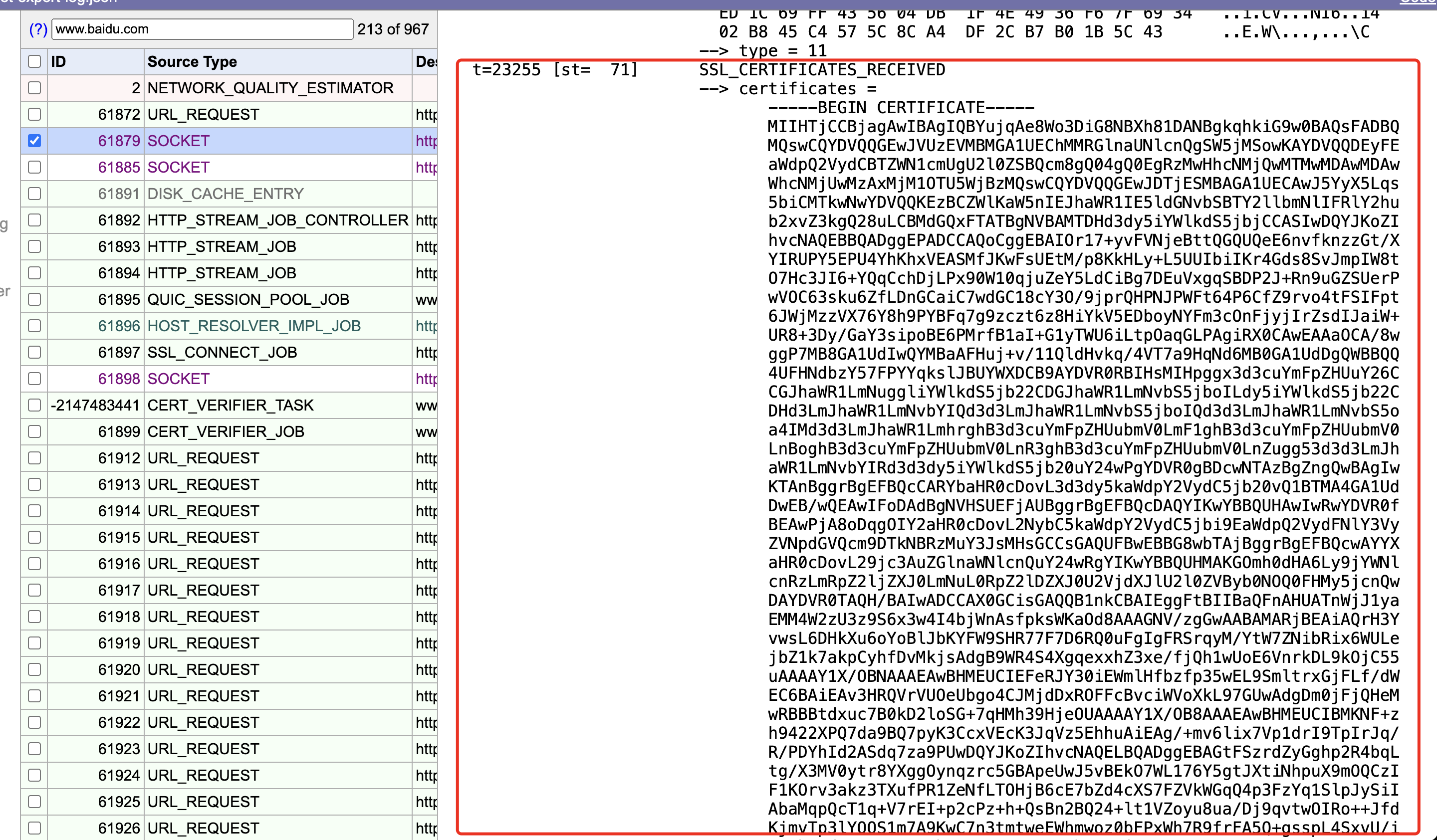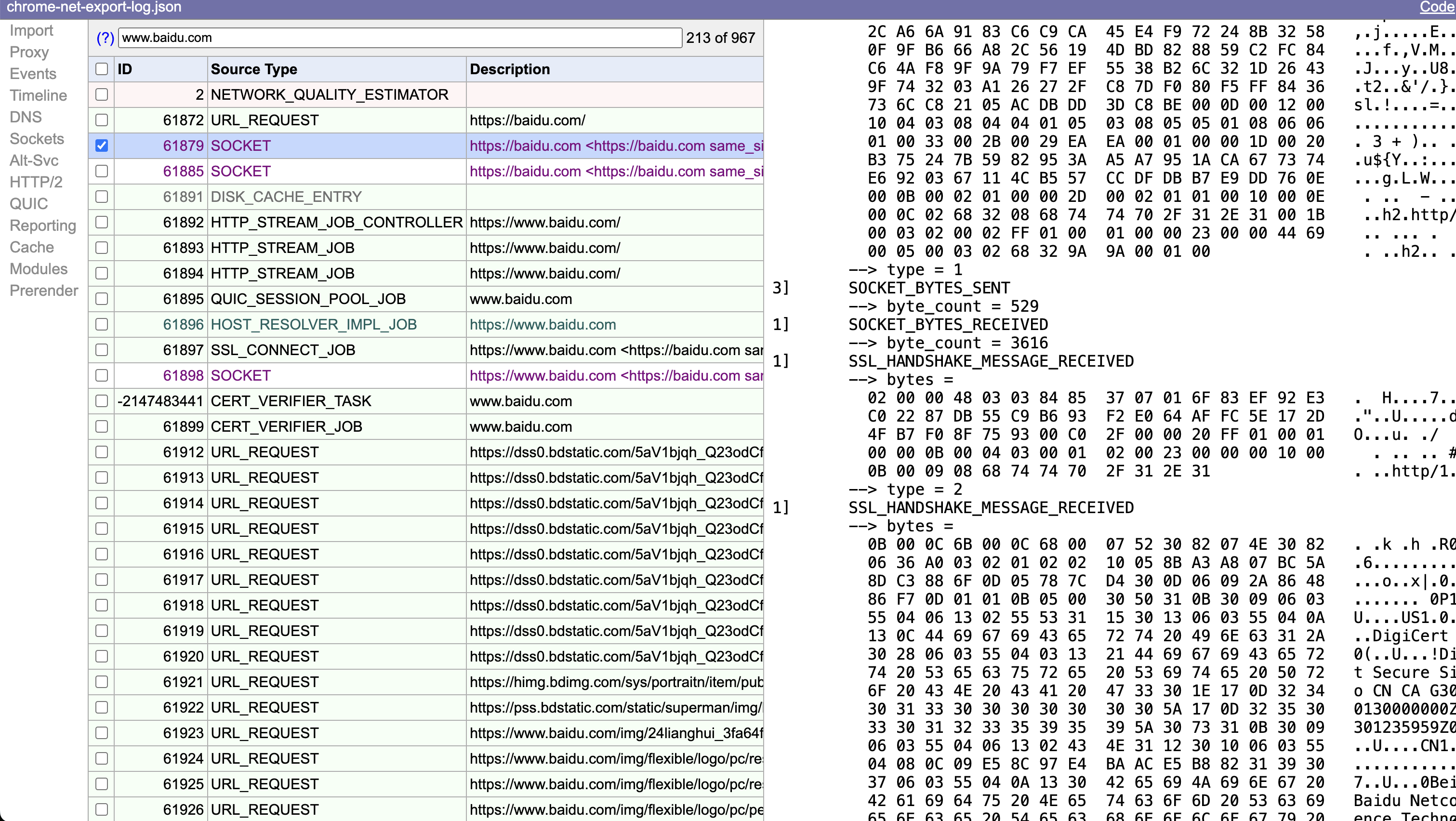 这里我们以打开百度为例,即在打开 chrome://net-export/ 并启动抓包后,再在一个新 tab 打开 baidu.com,然后关闭