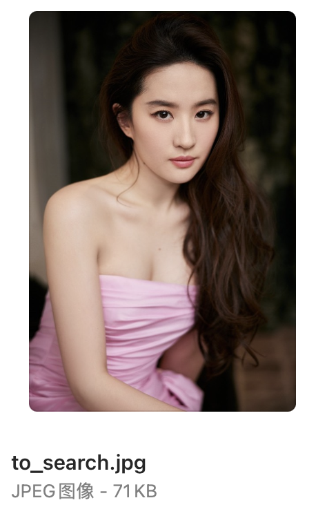然后我们找一张神仙姐姐的其他图片,先把它 embedding 后在 milvus 里进行向量检索1