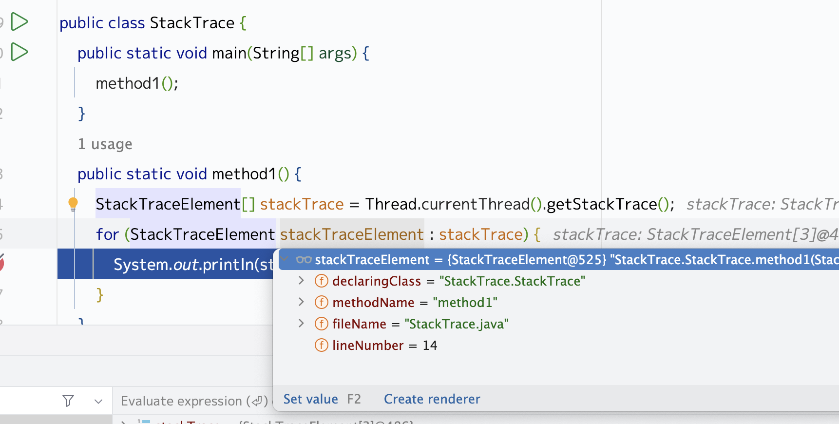 StackTrace.StackTrace.method1(StackTrace.java:14)