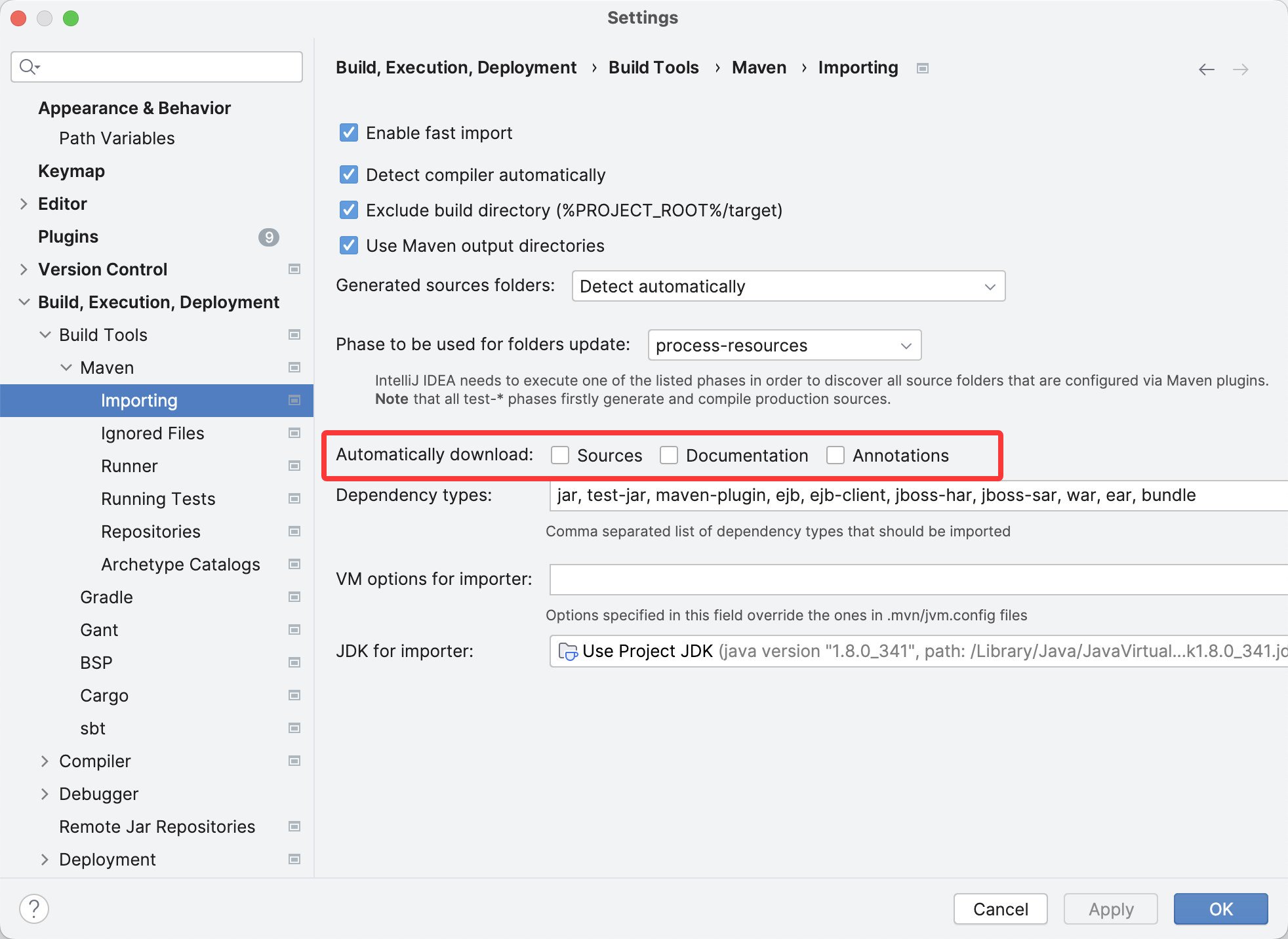 可以勾选sources,就会在下载依赖包的时候就自动下载sources