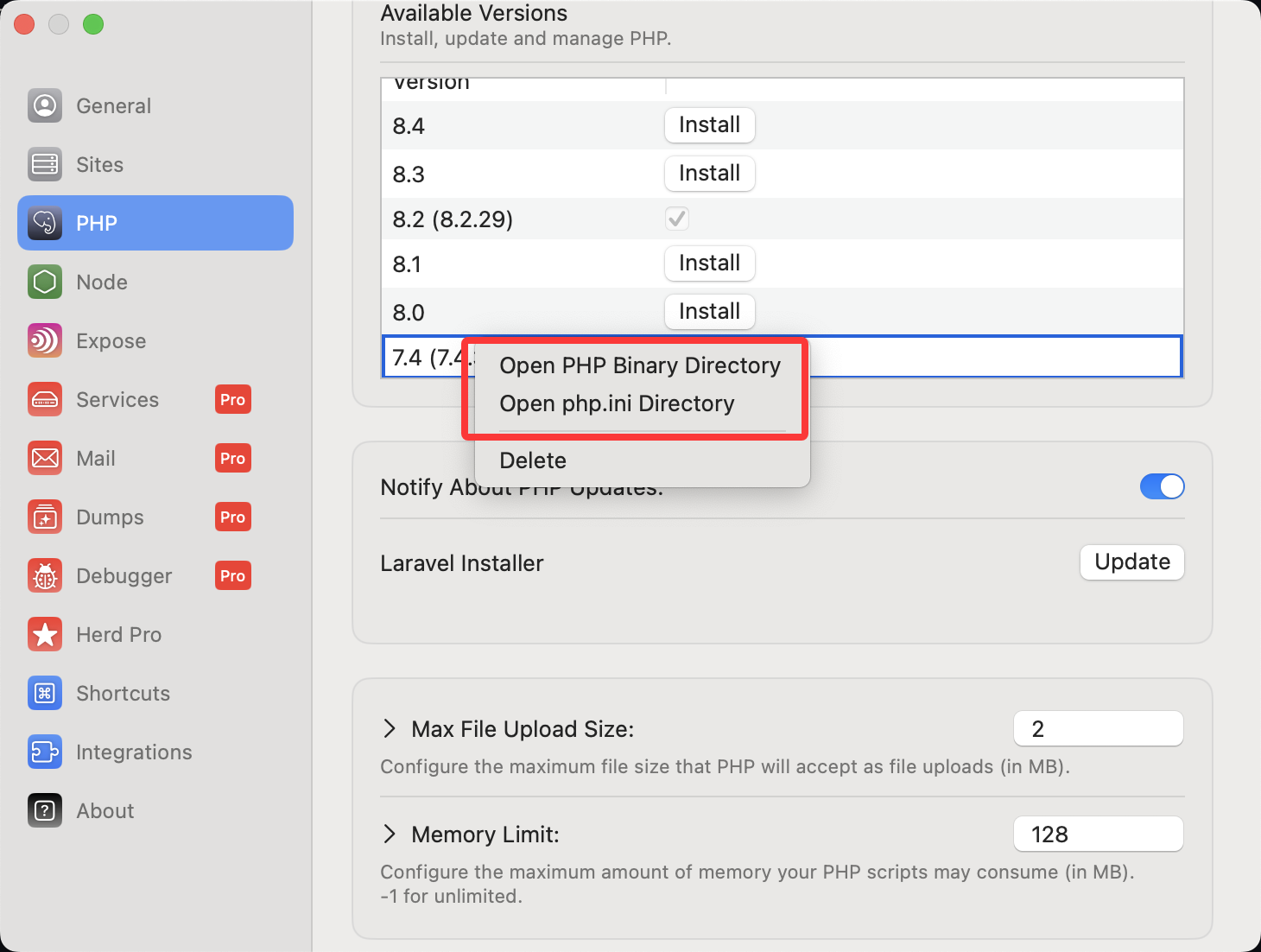 比如是php7.4就需要设置这个HERD_PHP_74_INI_SCAN_DIR="/Users/dasun/Library/Application Support/Herd/config/php/74/"