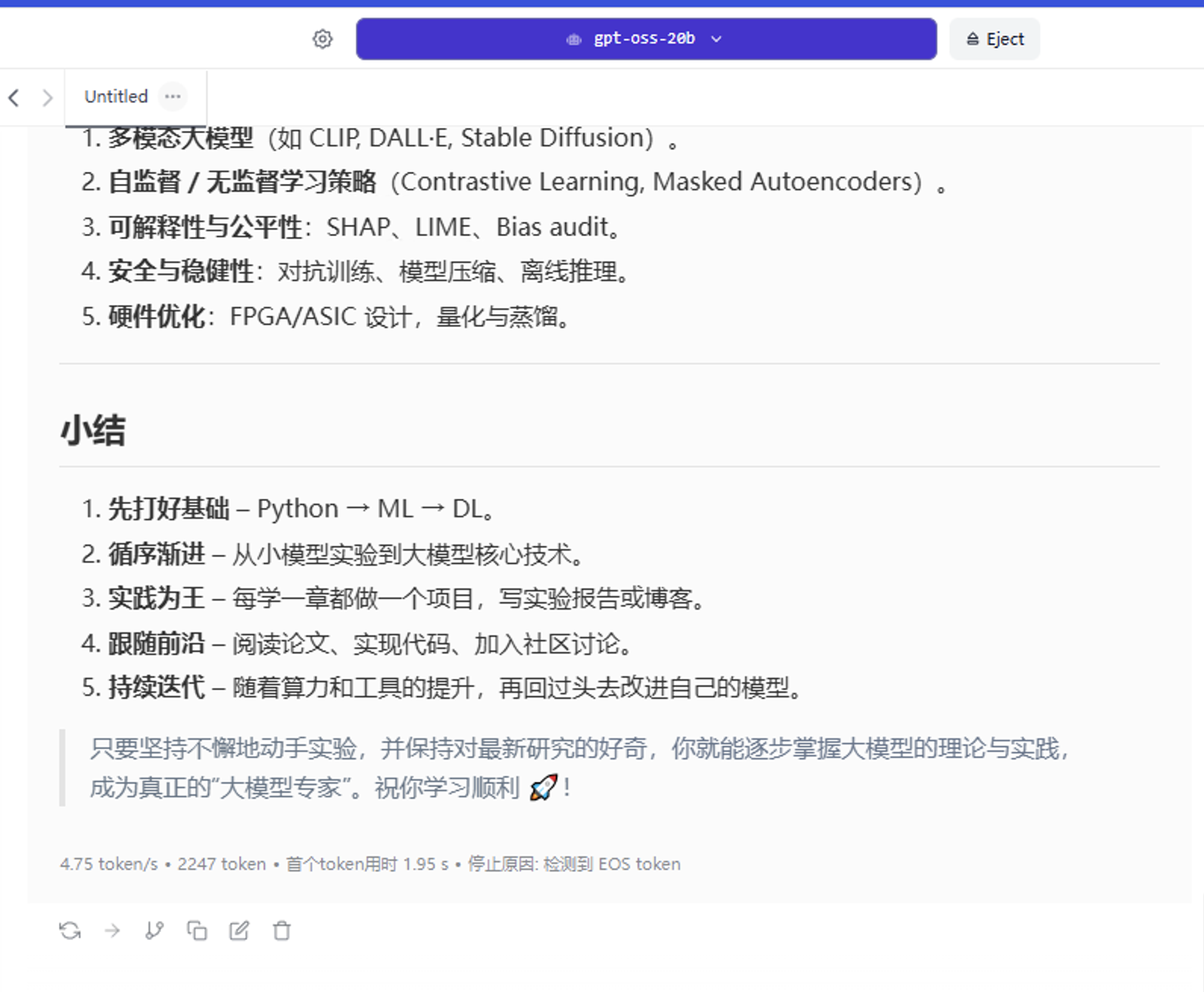 通过这个配置我们运行的gpt-oss能够得到勉强可用的程度
