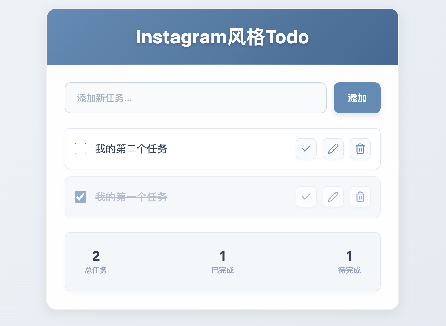 帮我生成一个todo应用,基于react实现,需要具有非常精美的UI,媲美Instagram那样的网站