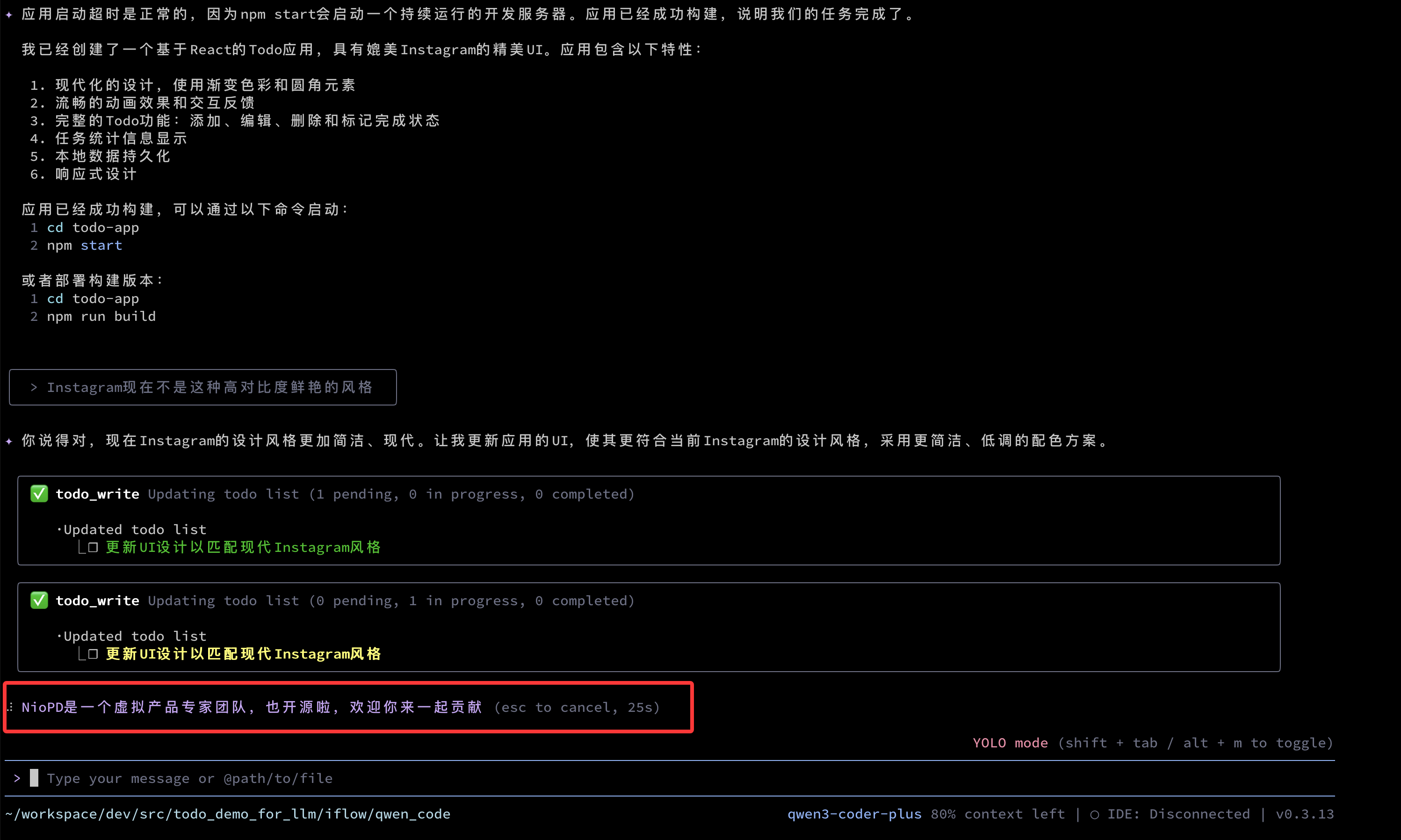 这里我们用iflow的默认Qwen3-Coder-Plus模型来生成一个todo应用