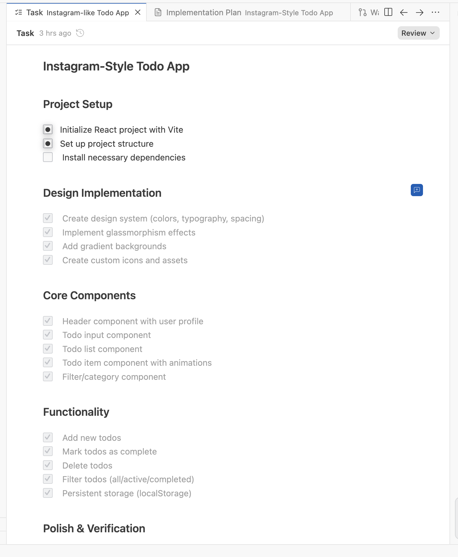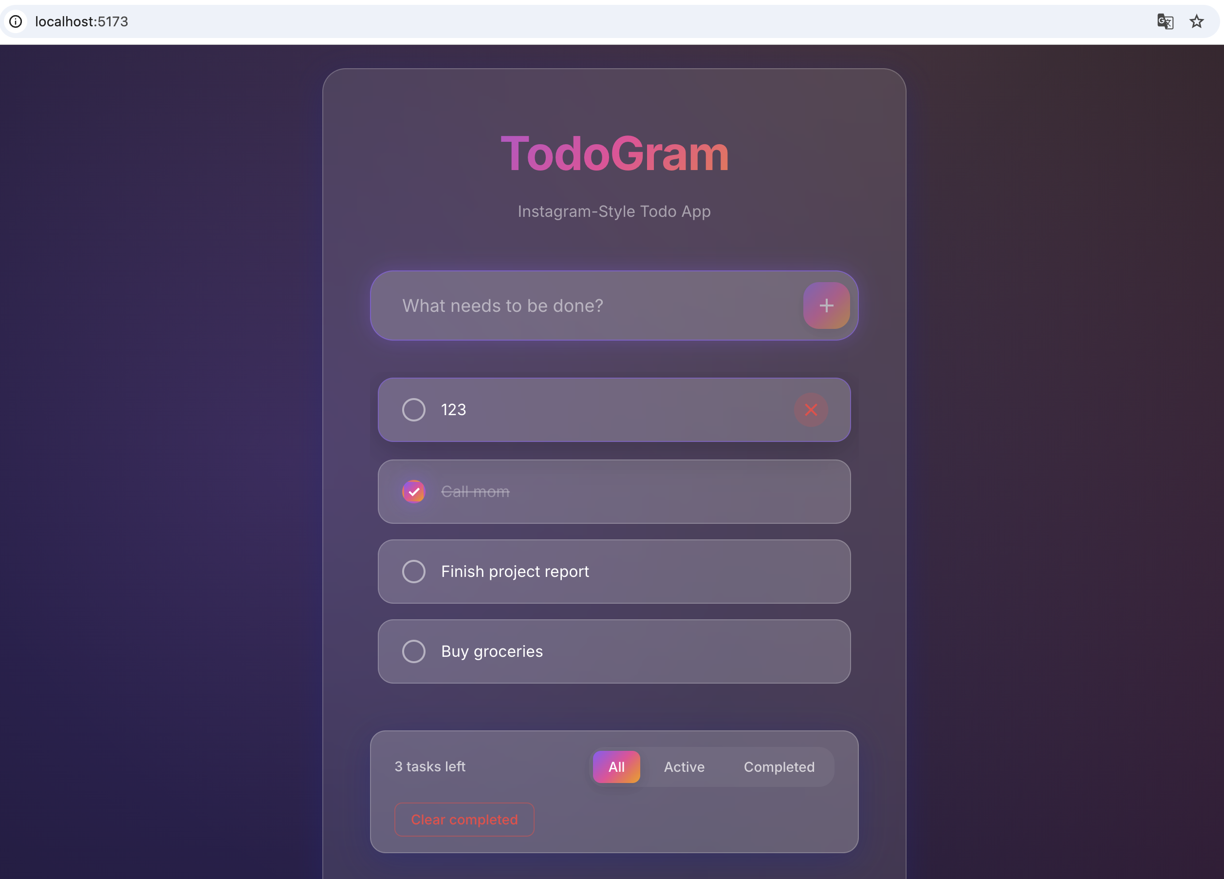 帮我生成一个todo应用,基于react实现,需要具有非常精美的UI,媲美Instagram那样的网站