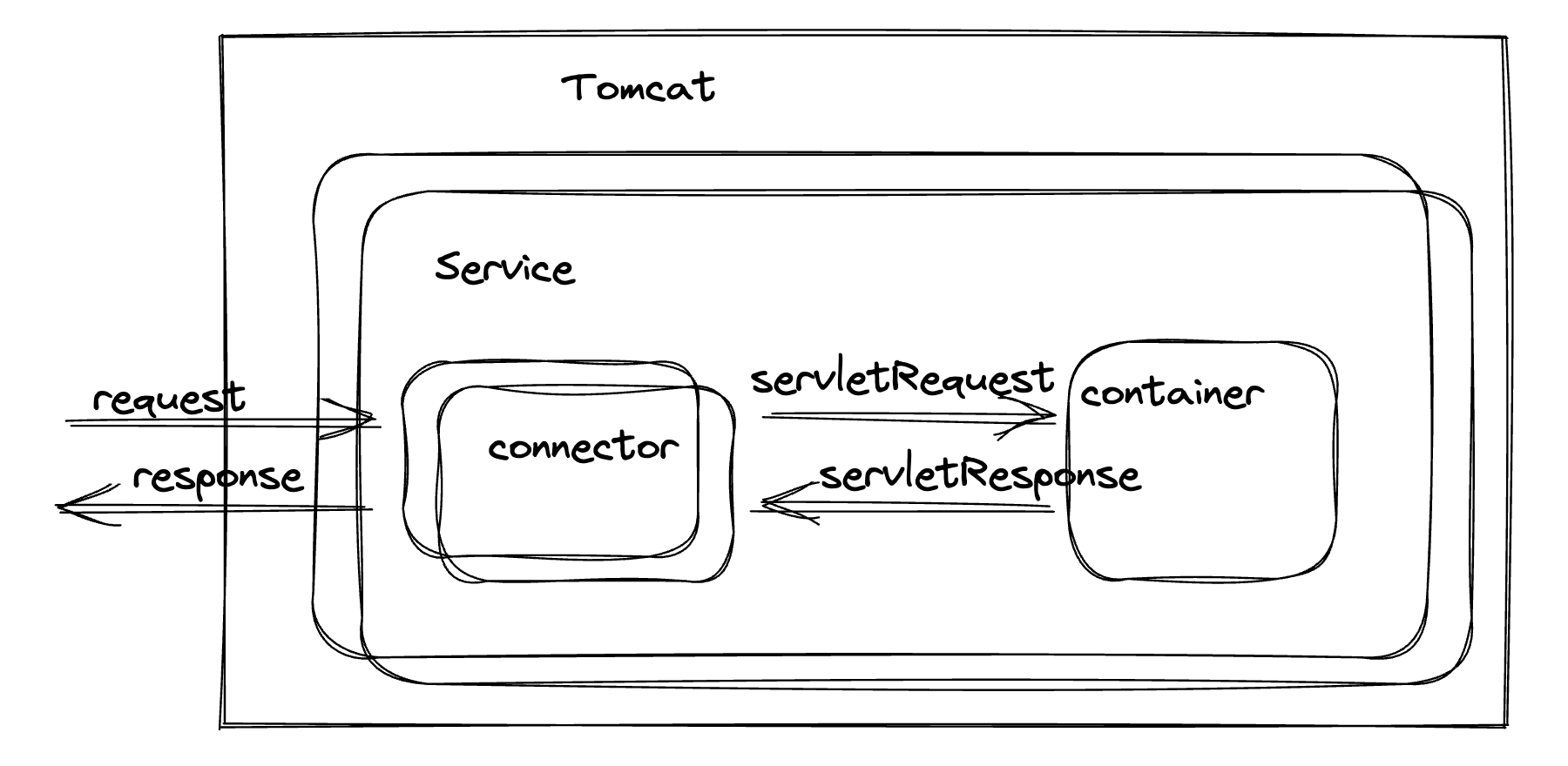 可以看到,先 new 了 StandardServer,再 new 了 StandardService,可以理解为创建 Server 后具体是由 service 进行服务, 而在 service 中就是上面的配置文件里显示的,service 包含了 connector,可以是多个connector,负责接入,具体内容可以参看上一篇 而后是 Engine,Engine 的关系是一个 Service 有一个 Engine,Engine 负责处理真正的逻辑,
