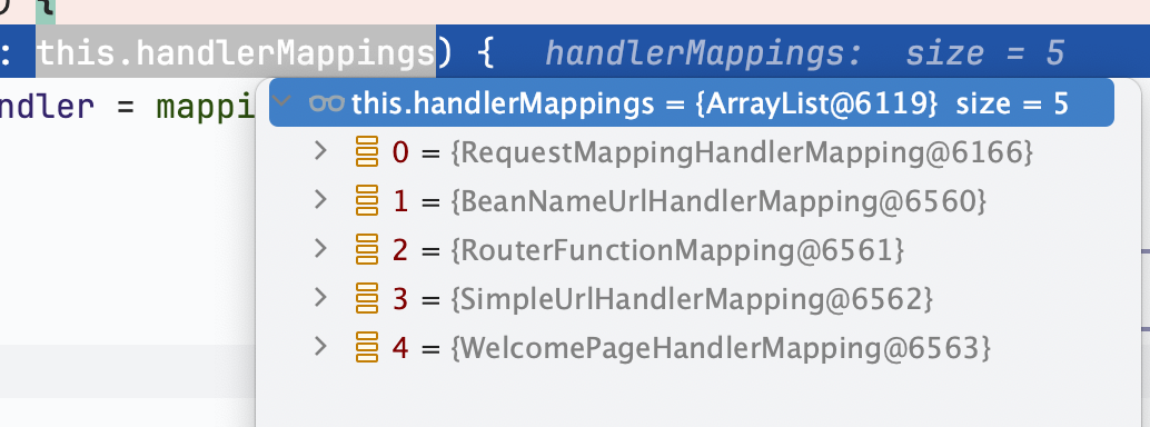 // 去获取处理器 // Determine handler for the current request. mappedHandler = getHandler(processedRequest); if (mappedHandler == null) { noHandlerFound(processedRequest, response); return; }